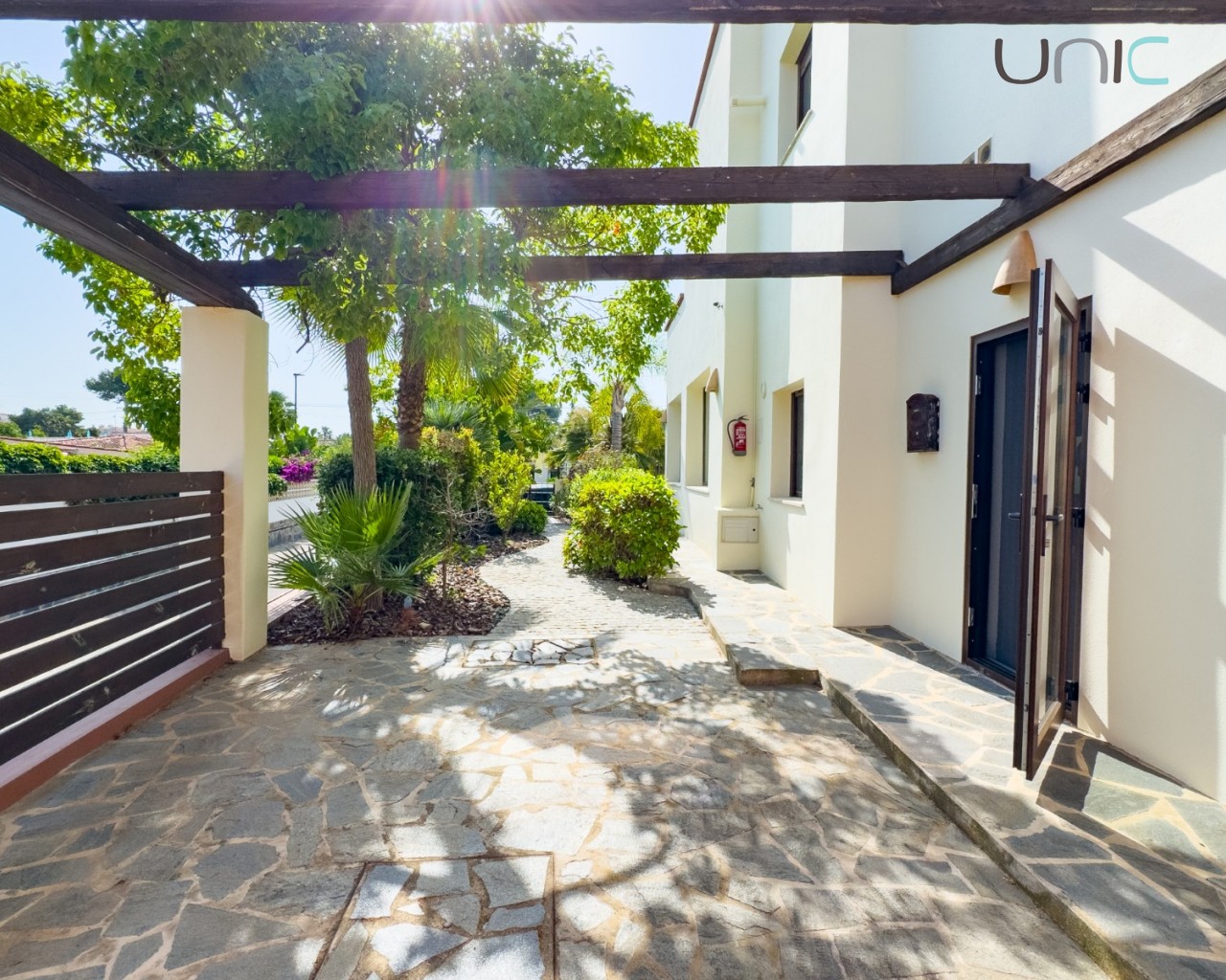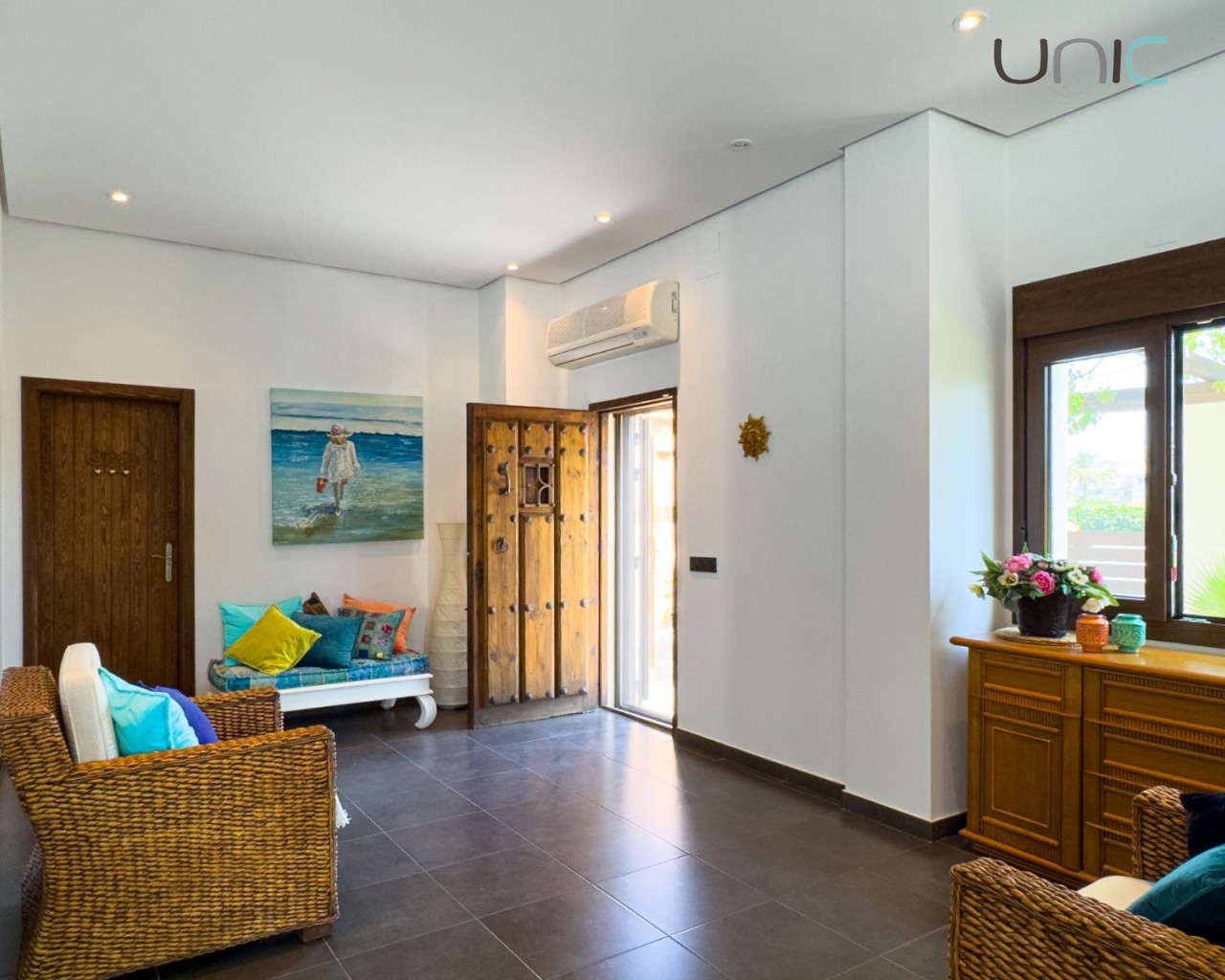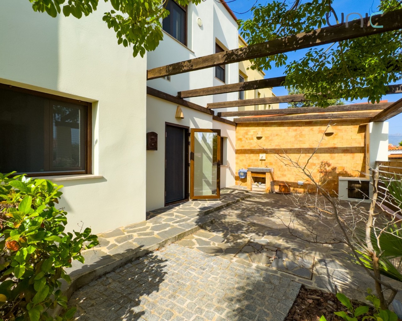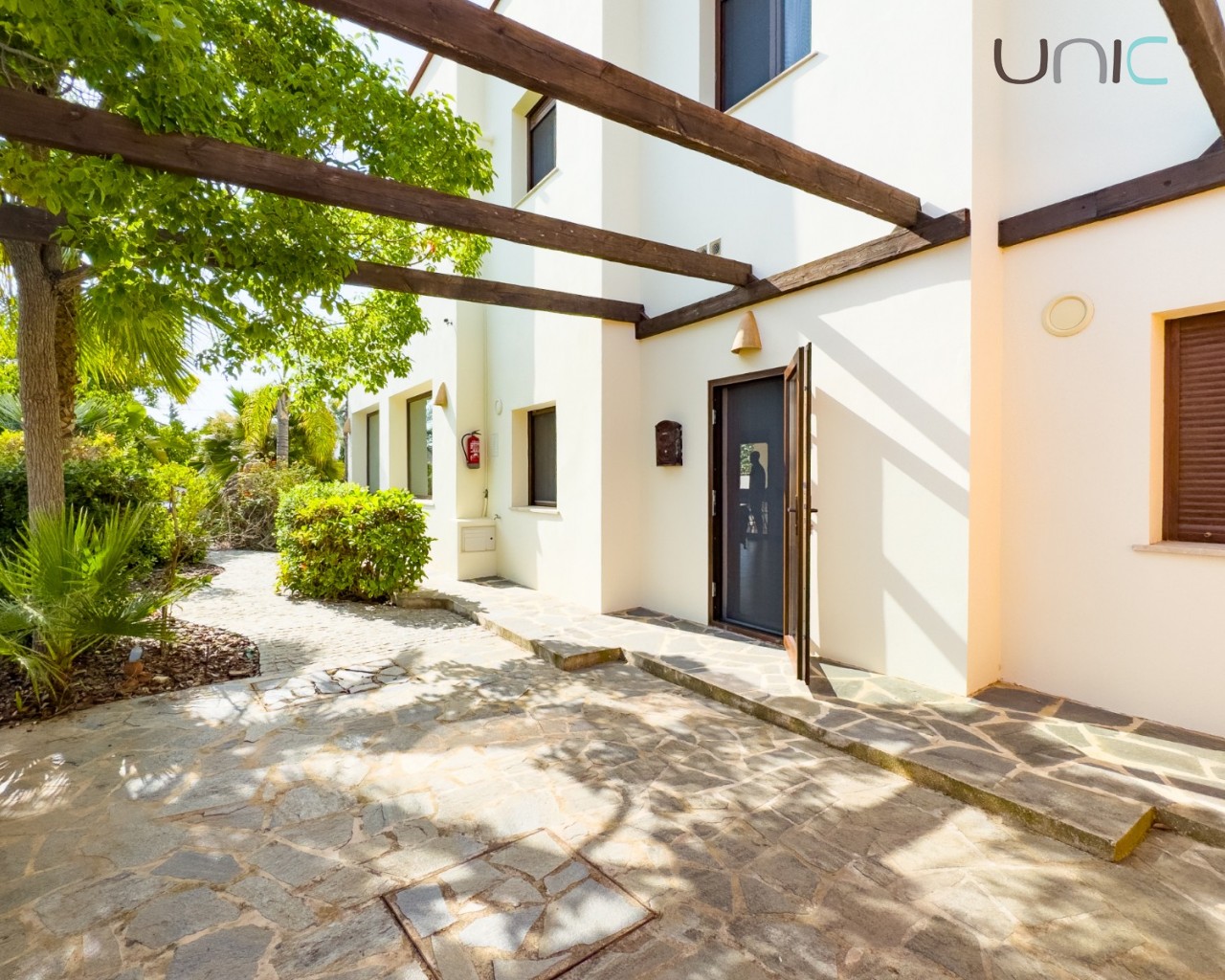 Diseñada con una estética cálida y atemporal que presenta fachadas en un suave blanco roto y elementos de madera tradicionales, la propiedad ofrece una sensación de villa independiente a pesar de ser semi-adosada. En el interior, la casa se despliega en dos niveles con cuatro dormitorios en la planta superior y una habitación versátil en la planta baja ideal para invitados, una oficina o un espacio creativo.