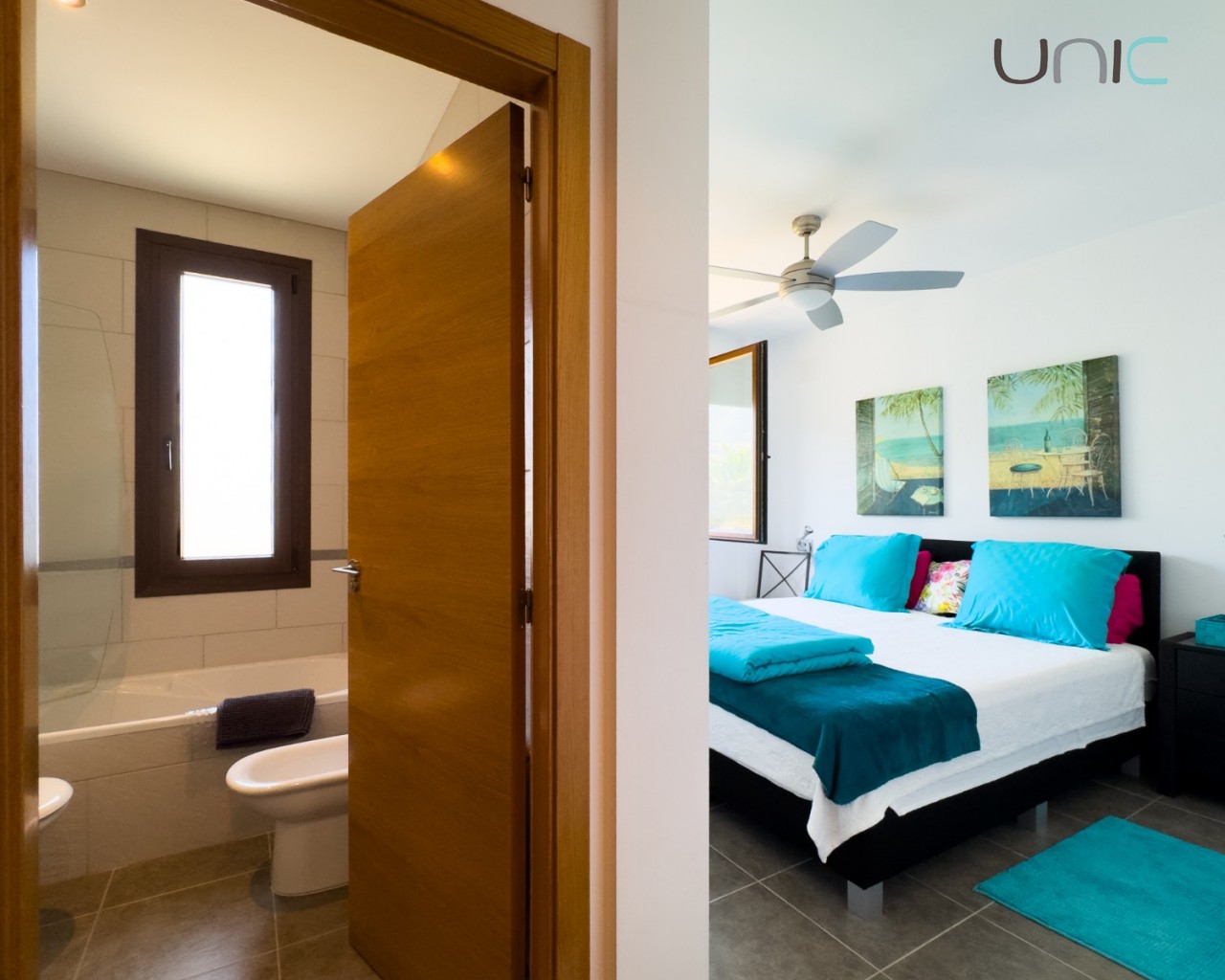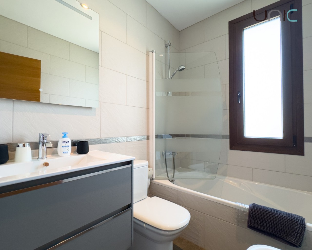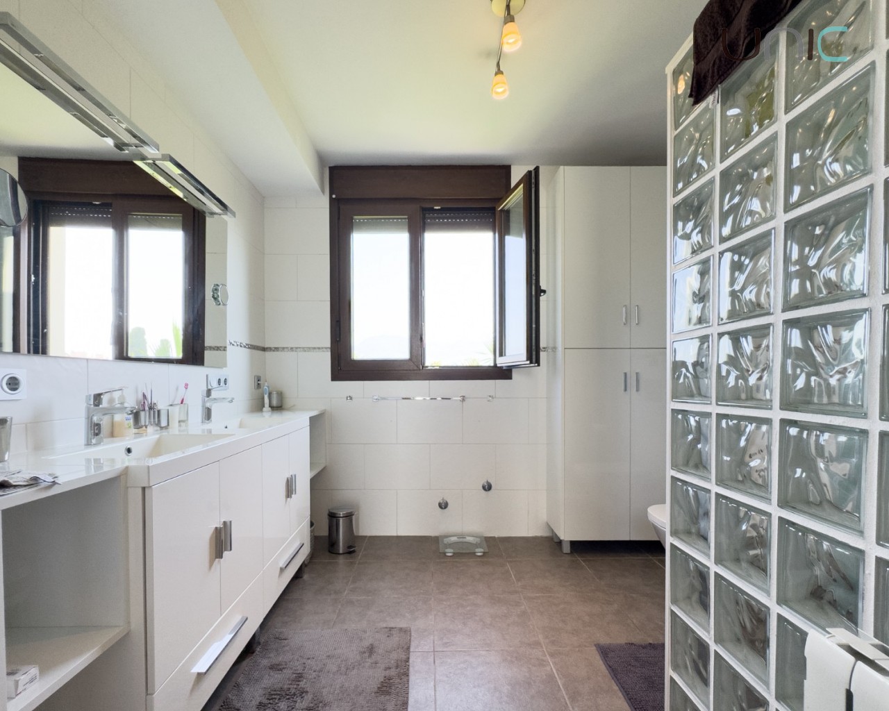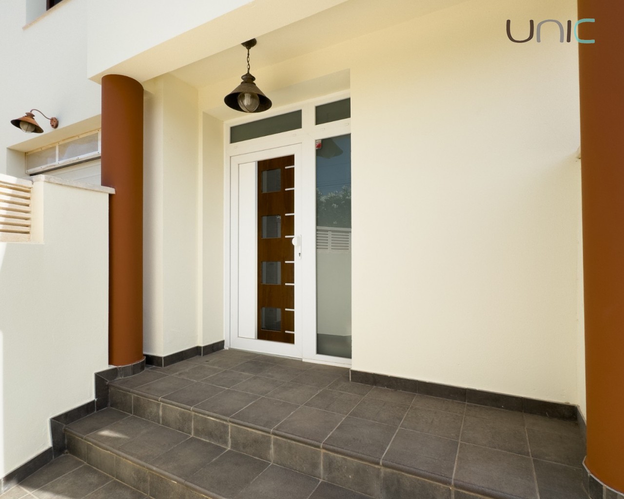 Diseñada con una estética cálida y atemporal que presenta fachadas en un suave blanco roto y elementos de madera tradicionales, la propiedad ofrece una sensación de villa independiente a pesar de ser semi-adosada. En el interior, la casa se despliega en dos niveles con cuatro dormitorios en la planta superior y una habitación versátil en la planta baja ideal para invitados, una oficina o un espacio creativo.