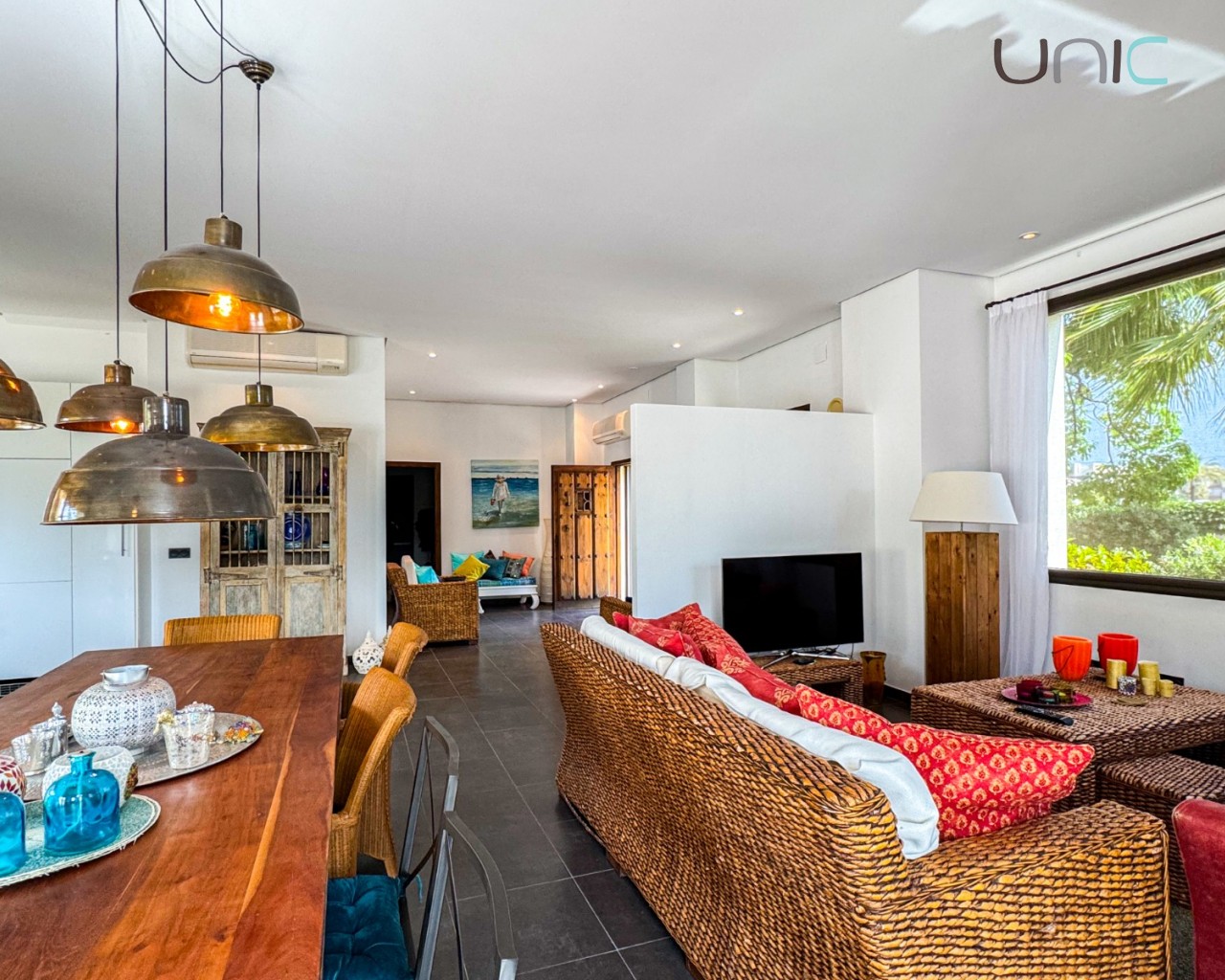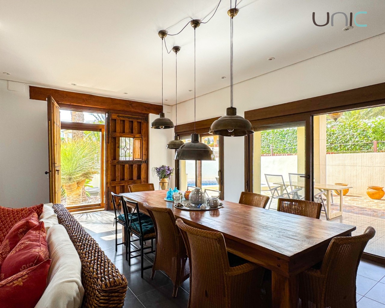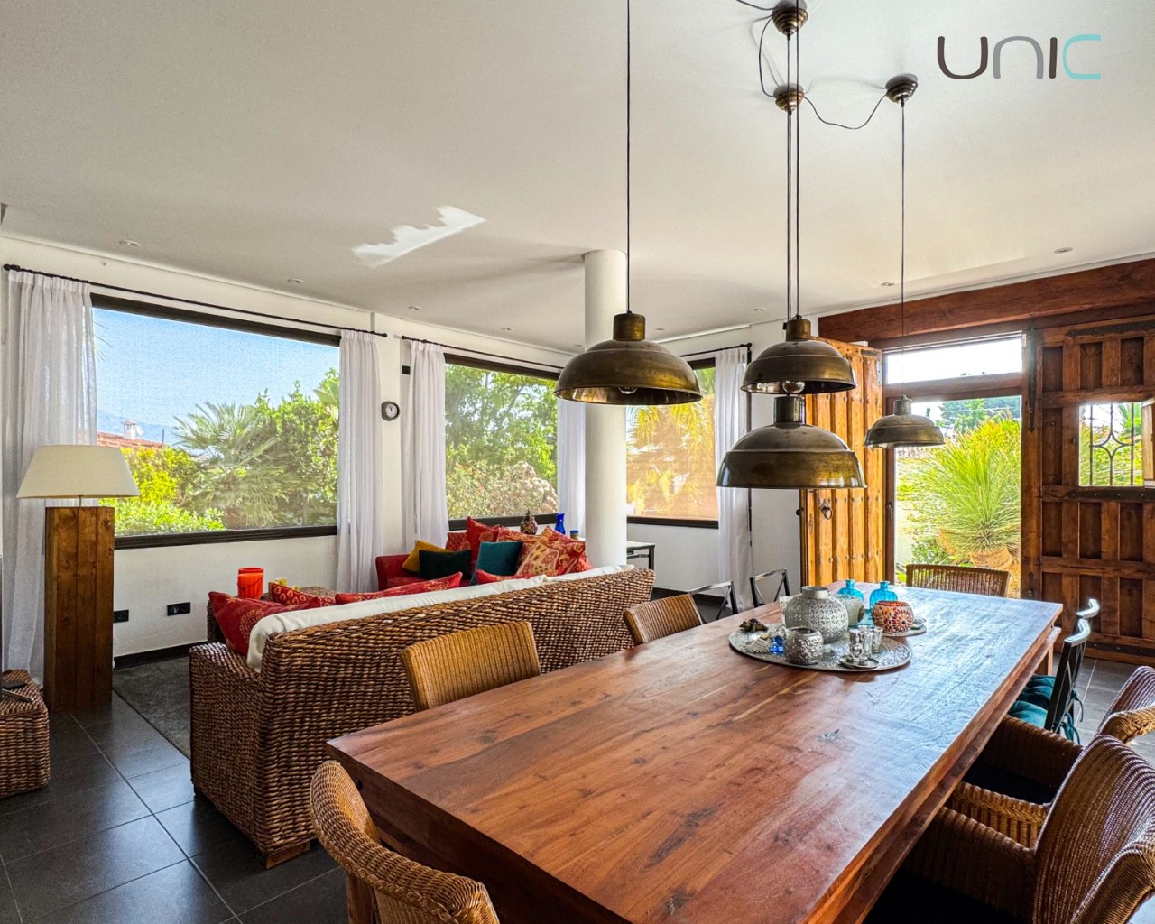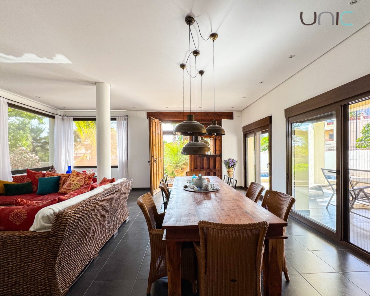 La sala de estar impresiona con techos de doble altura, abundante luz natural y acceso directo a acogedoras terrazas y a la piscina privada, creando un estilo de vida fluido entre el interior y el exterior.