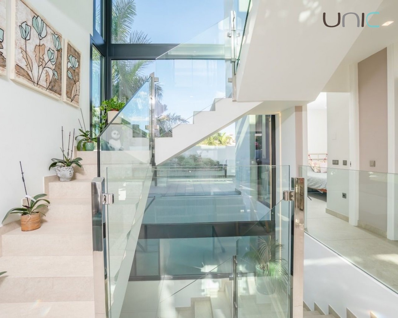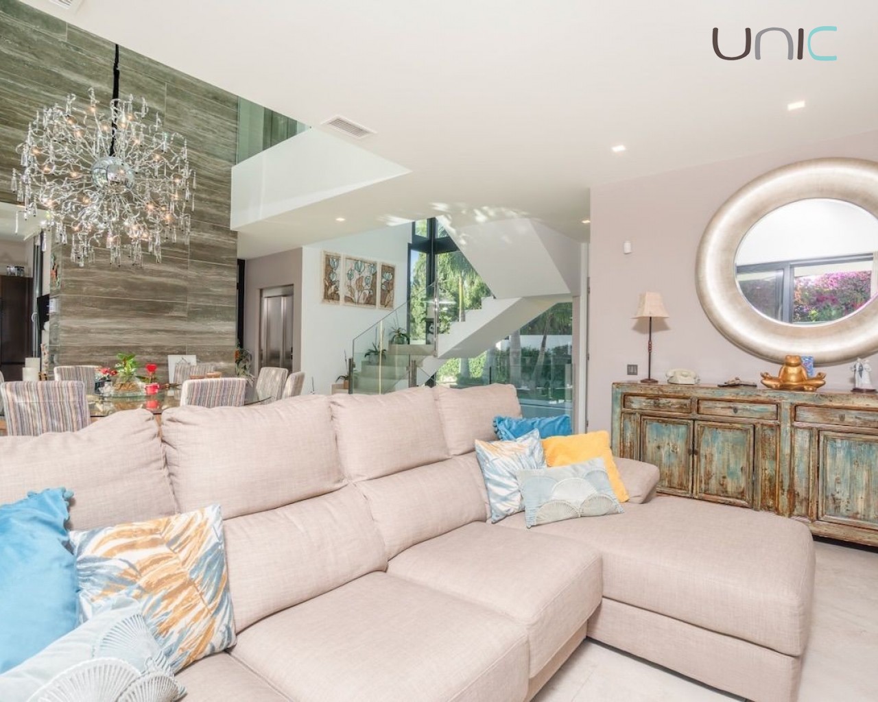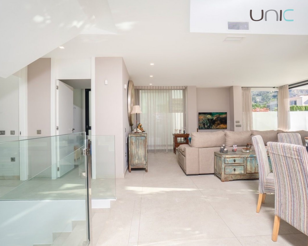 Eiendommen prioriterer privatliv og er utstyrt med markiser, mens soverommene har blendingsgardiner og persienner. Den har også komplett klimaanlegg, gulvvarme, aerotermisk oppvarming, hjemmeautomatisering, alarmsystem, sikkerhetskameraer, sentralstøvsugersystem og vannrensesystem.