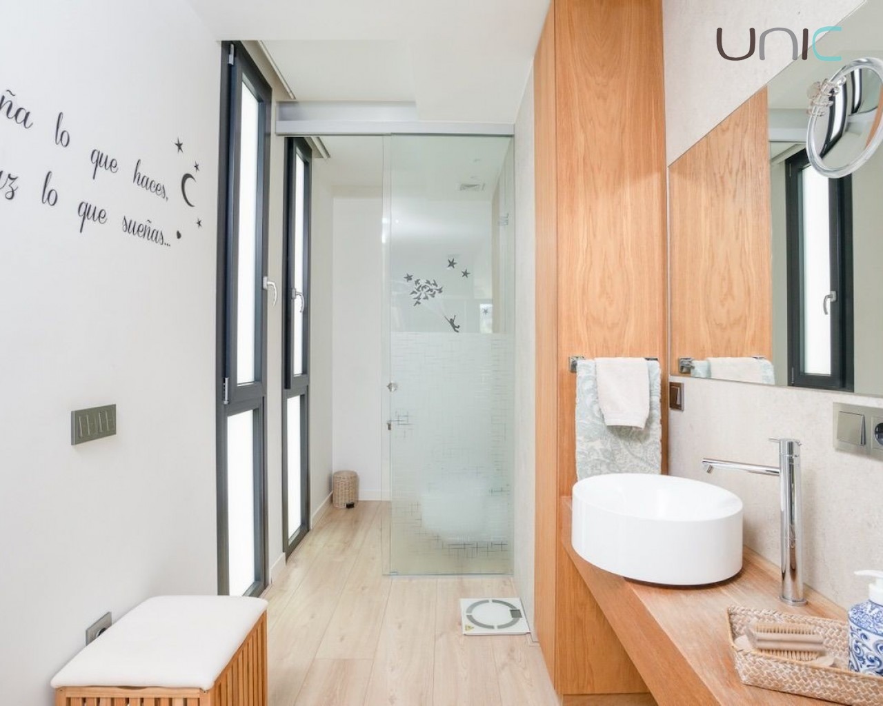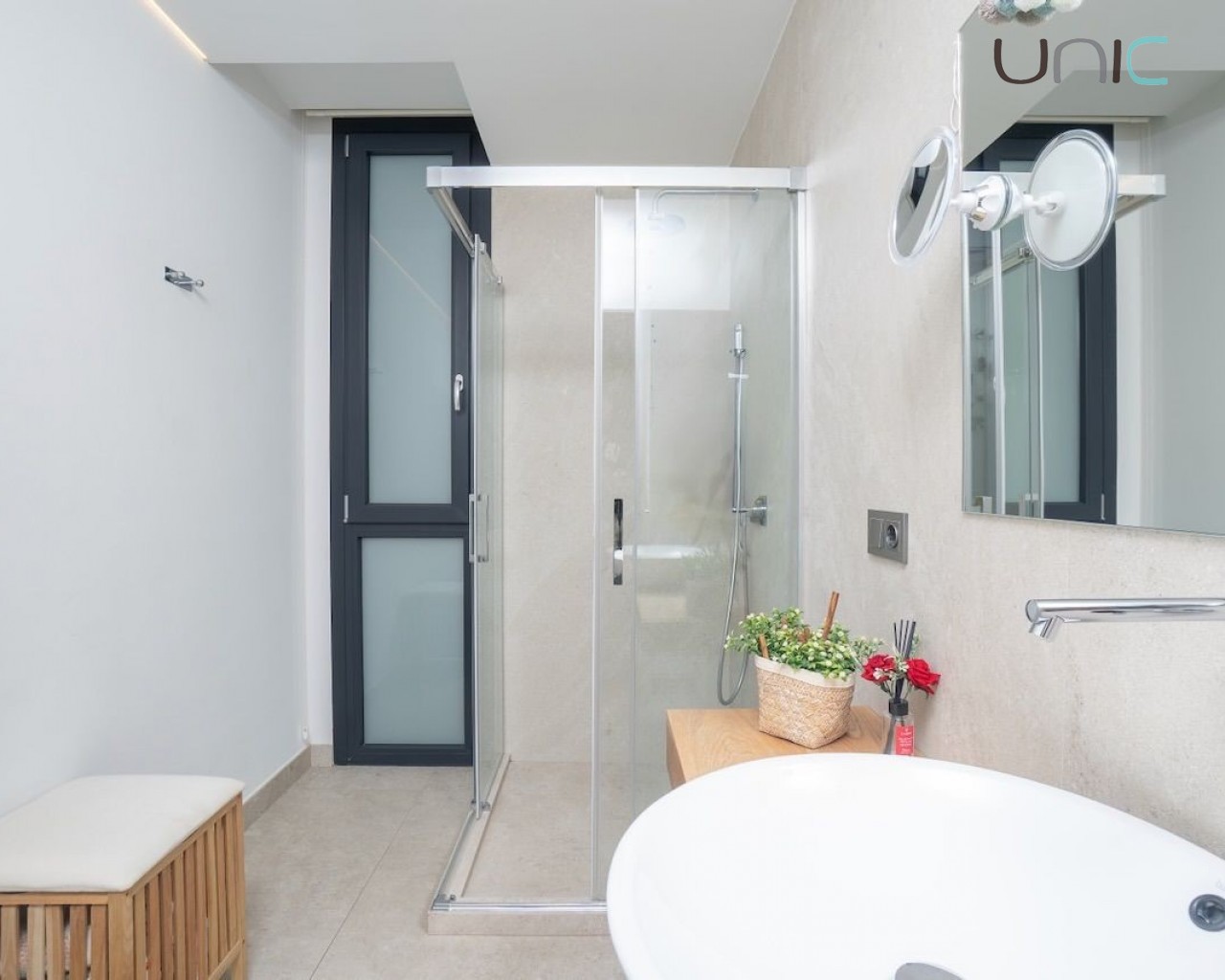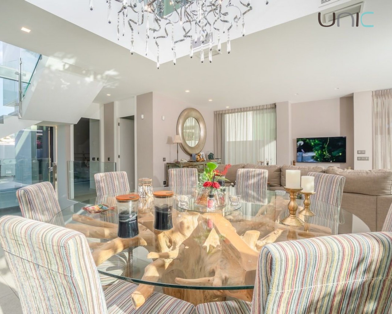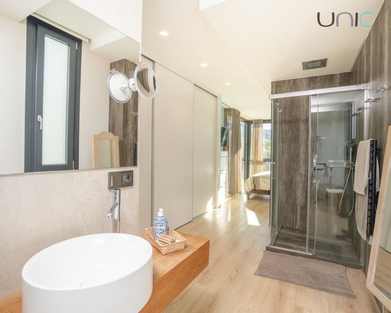 Eiendommen prioriterer privatliv og er utstyrt med markiser, mens soverommene har blendingsgardiner og persienner. Den har også komplett klimaanlegg, gulvvarme, aerotermisk oppvarming, hjemmeautomatisering, alarmsystem, sikkerhetskameraer, sentralstøvsugersystem og vannrensesystem.