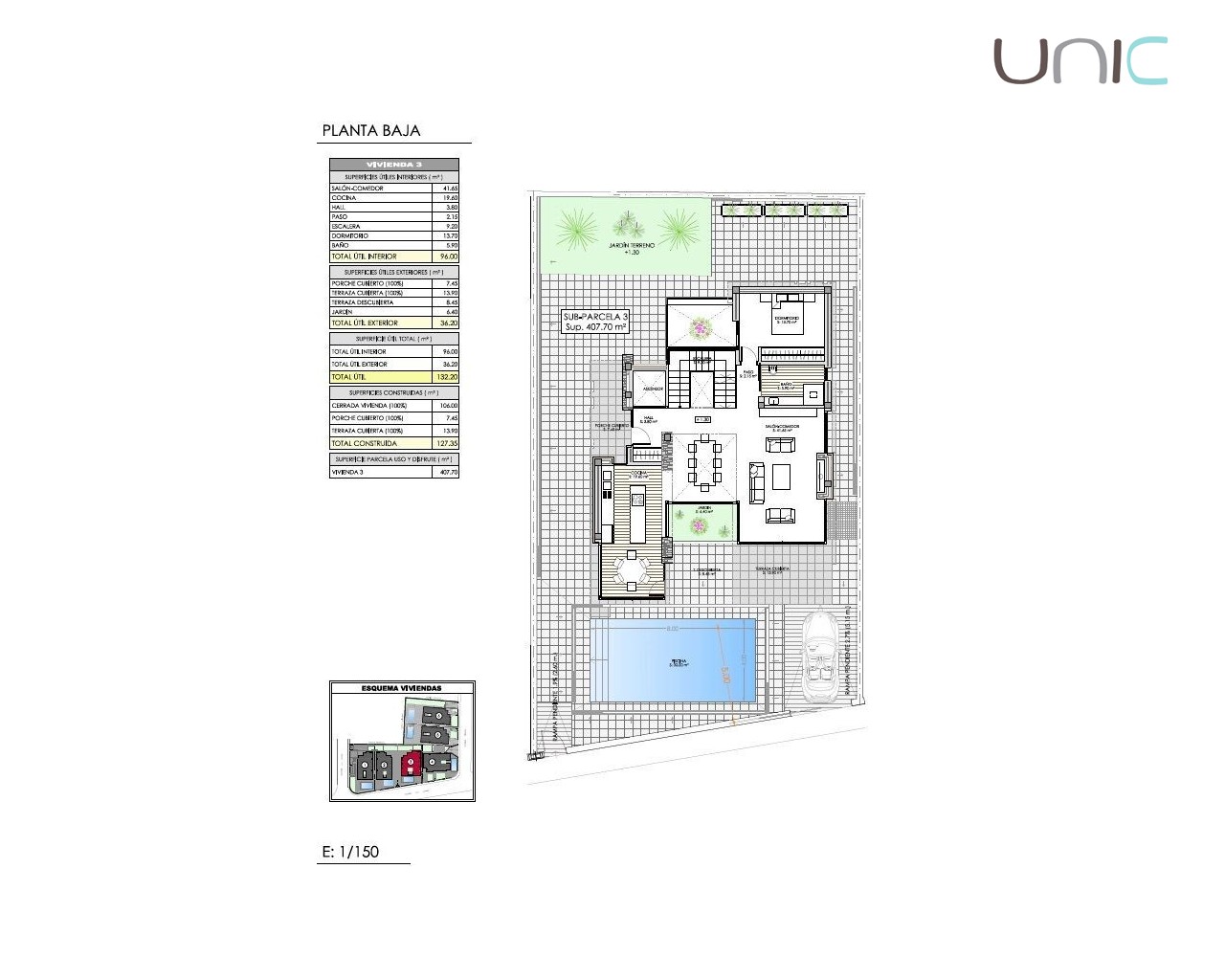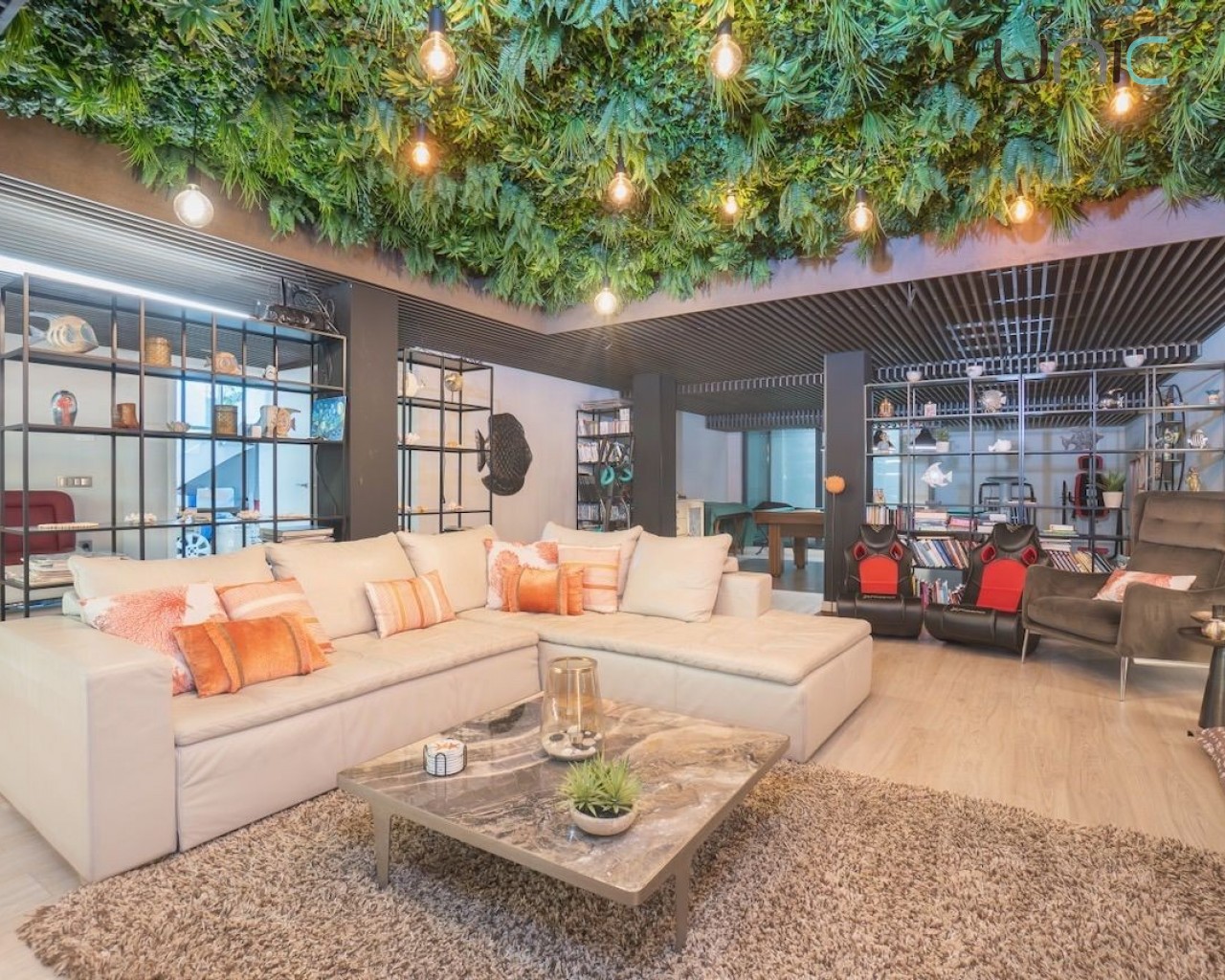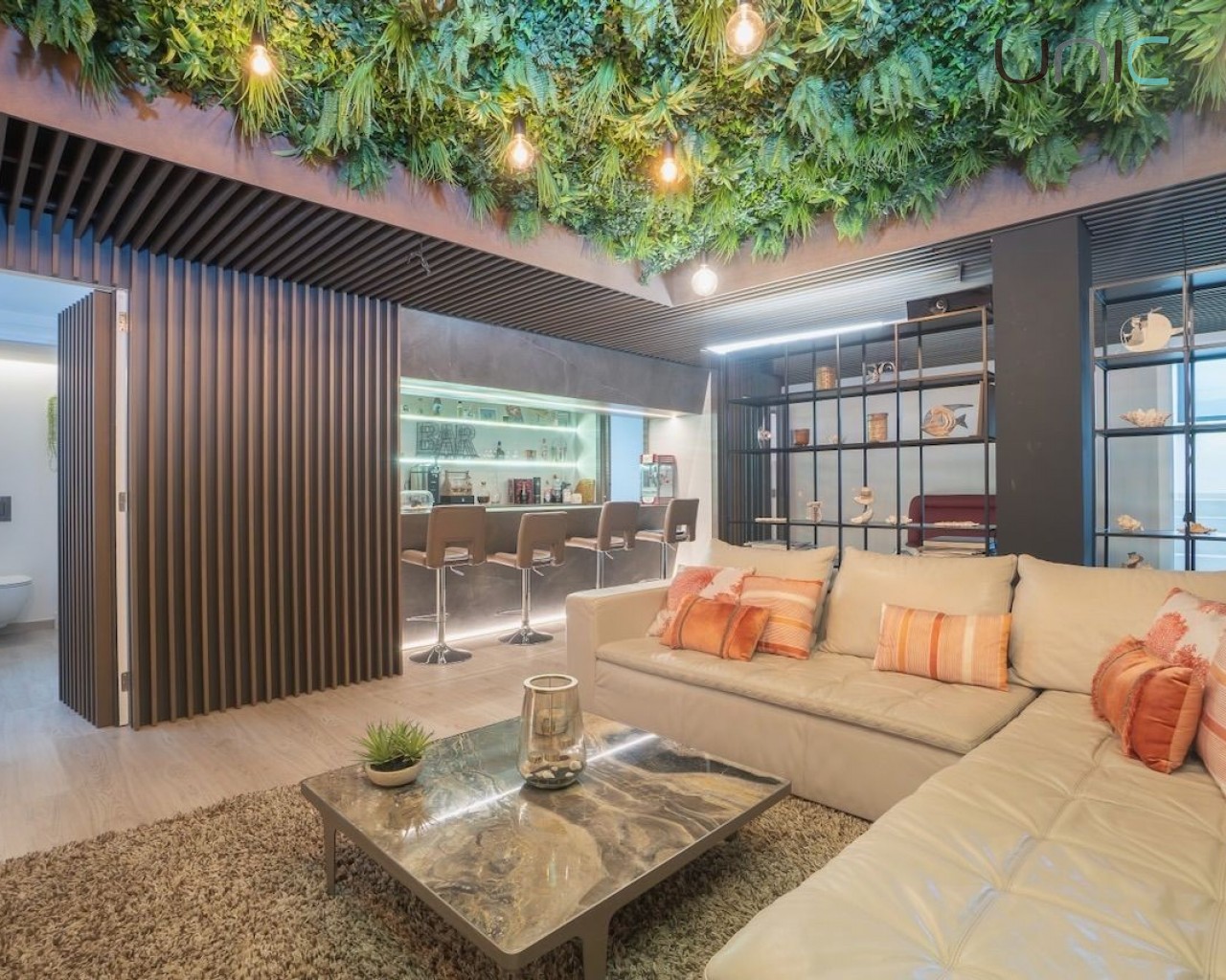Villaen består av en hovedetasje, en øvre etasje med soverom, en takterrasse og en eksklusiv designerkjeller med et stort flerbruksrom med biljardområde, bar, kino, spiskammer og et komplett bad med dusj. Denne kjelleretasjen inkluderer en lys indre terrasse som gir rikelig med naturlig lys. Her finner man også vaskerom, bod og en romslig garasje.