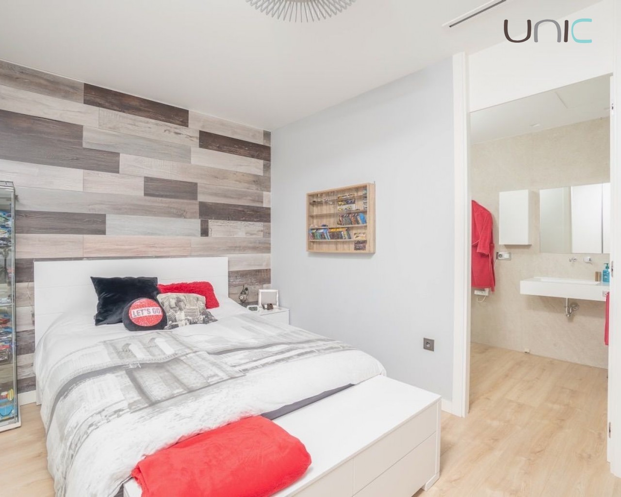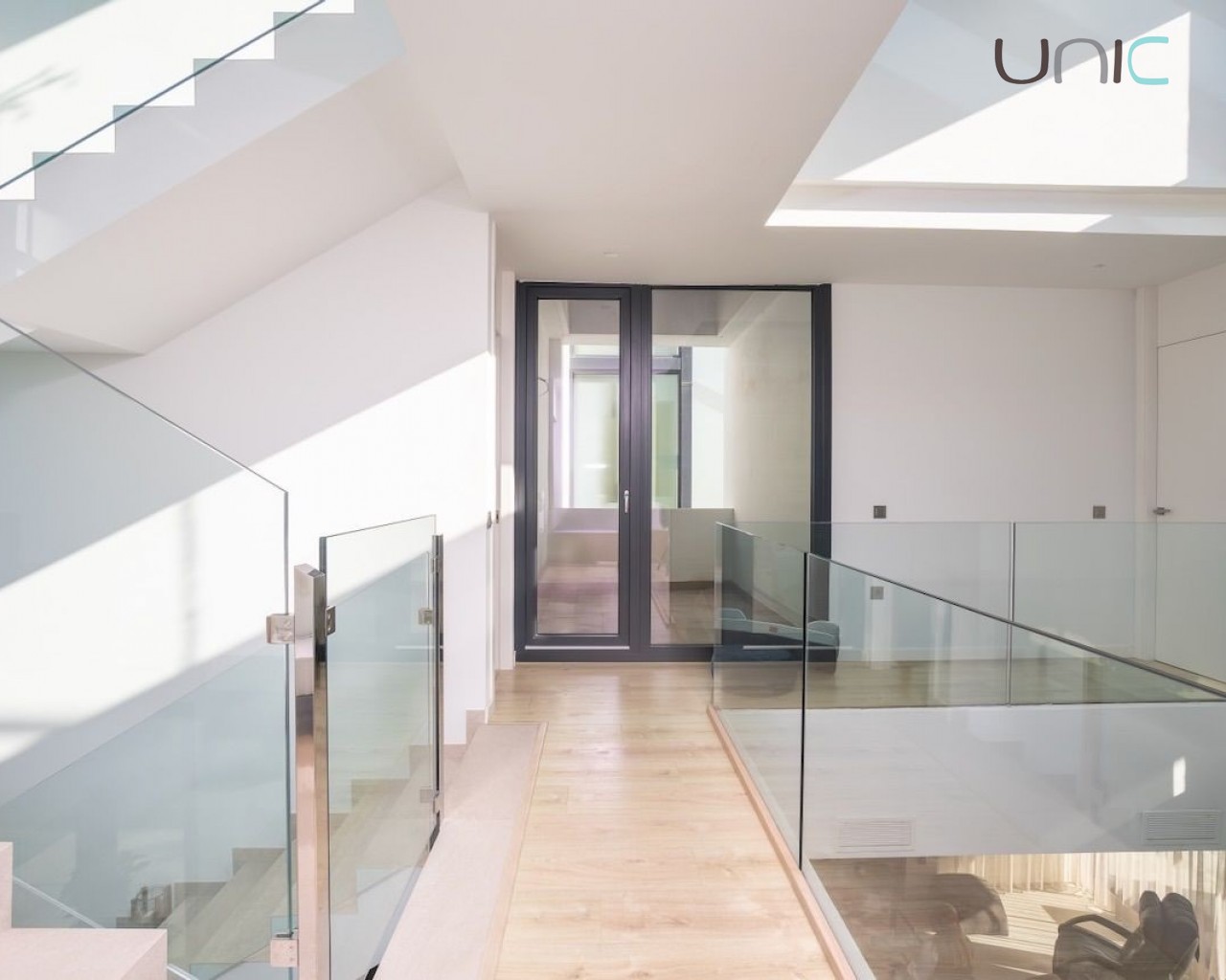 Øvre etasje inneholder hovedsoverommet og ytterligere 2 soverom. Alle soverommene har eget bad og store vinduer.