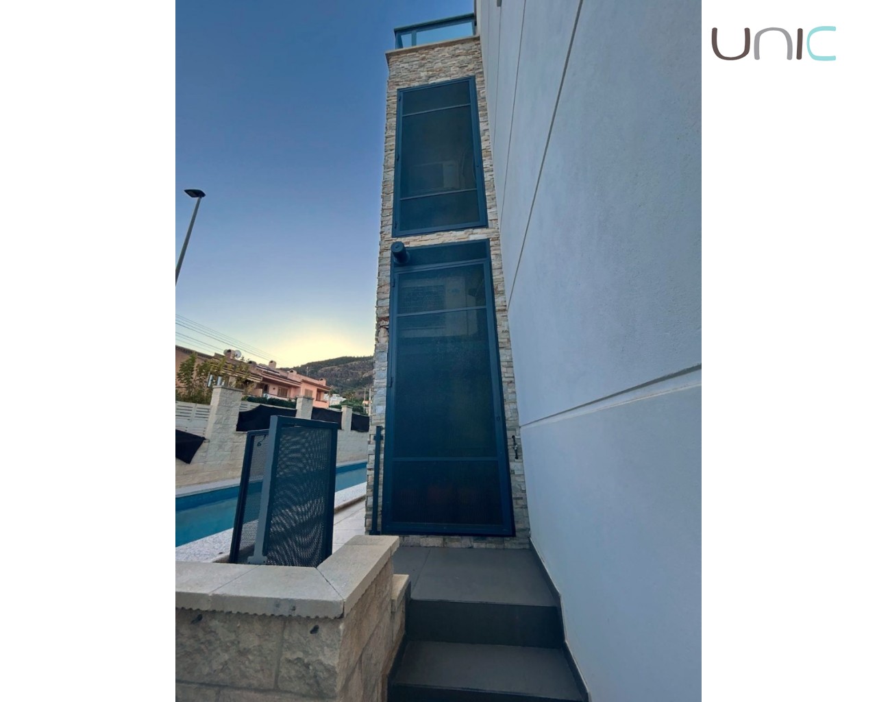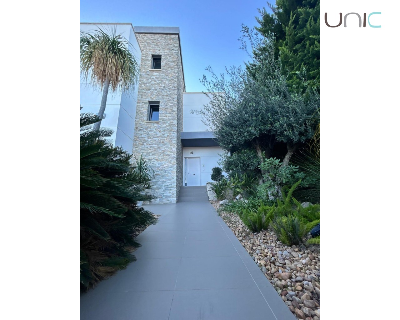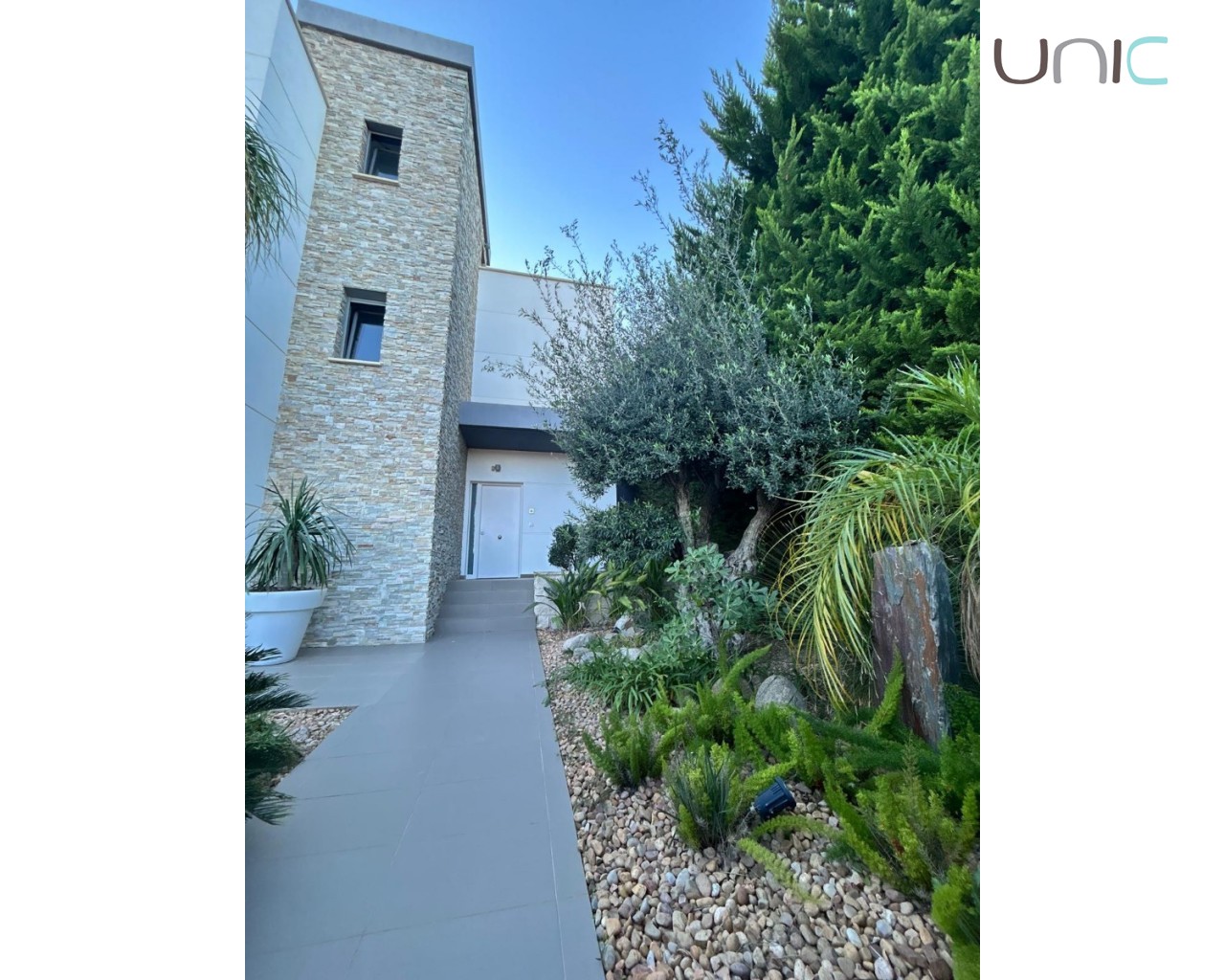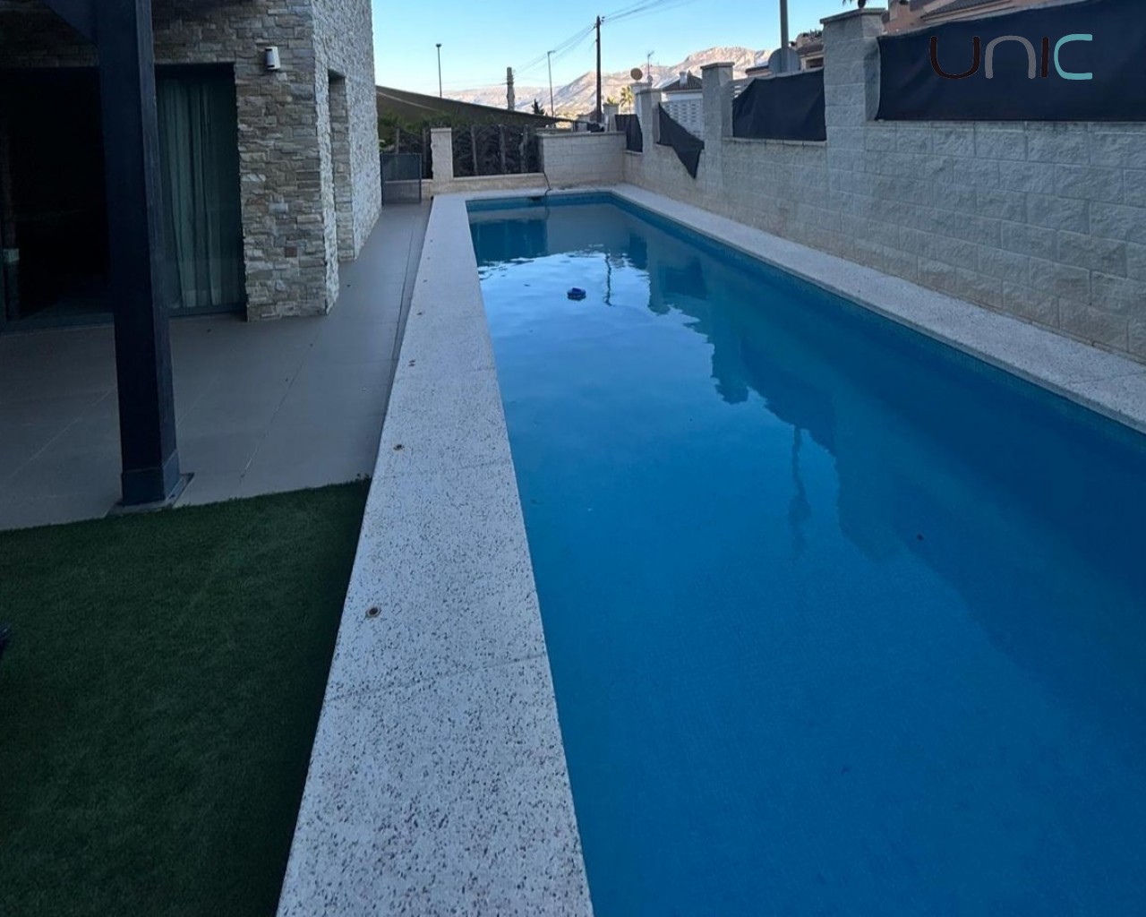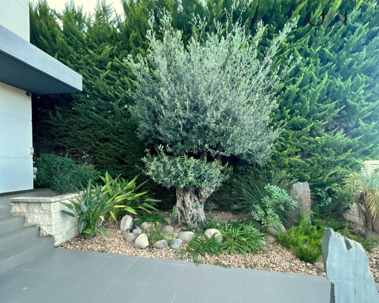 This robustly built, modern property boasts hand-laid natural stone and solid wood, seamlessly blending into the Serra Gelada Natural Park. It offers four spacious bedrooms with built-in wardrobes on the second floor, overlooking the bright and airy living room. The villa also features three fully equipped bathrooms, a separate kitchen easily accessible from the living room, dining room, and swimming pool. Two terraces, a solarium, a balcony, a storage room, and a covered garage are also distributed throughout the property. Located in one of Albir's most exclusive and peaceful neighborhoods, it is just five minutes from the beach, where you'll find restaurants and leisure activities to enjoy alone or with family. The beautiful Camino del Faro (Lighthouse Trail) is also nearby, offering opportunities for outdoor sports and magnificent views of the bay and the fresh Mediterranean air. Without a doubt, acquiring this villa offers a relaxed lifestyle. Thank you for your inquiry.