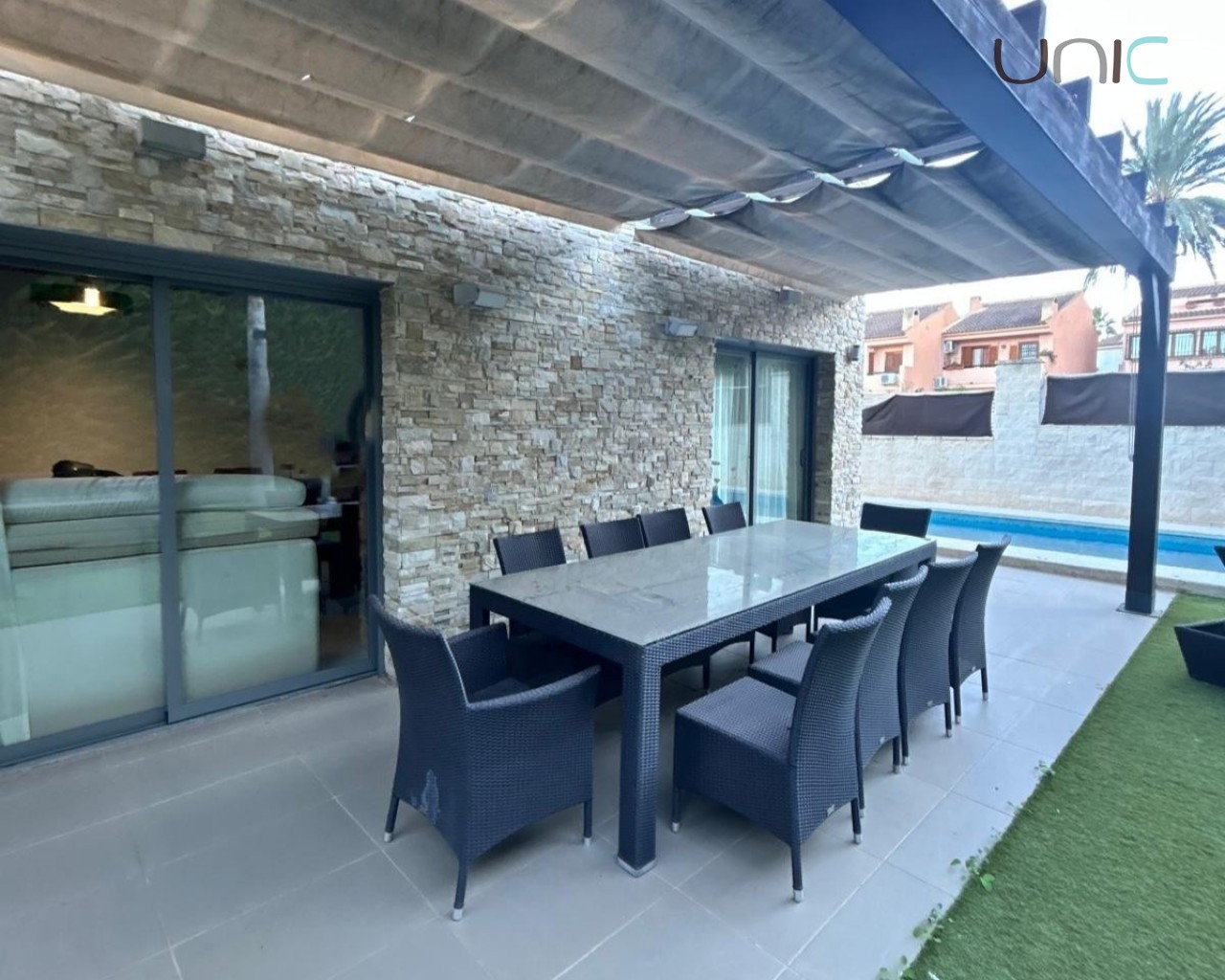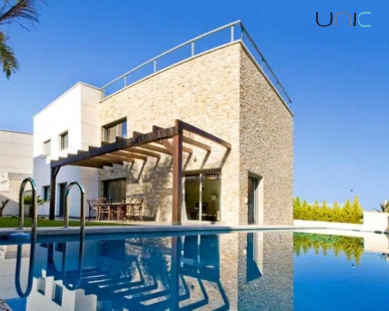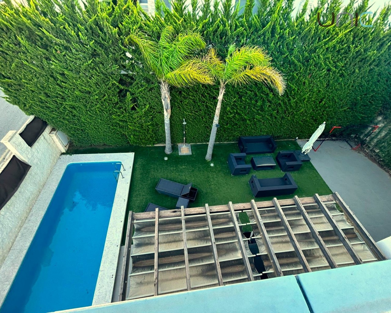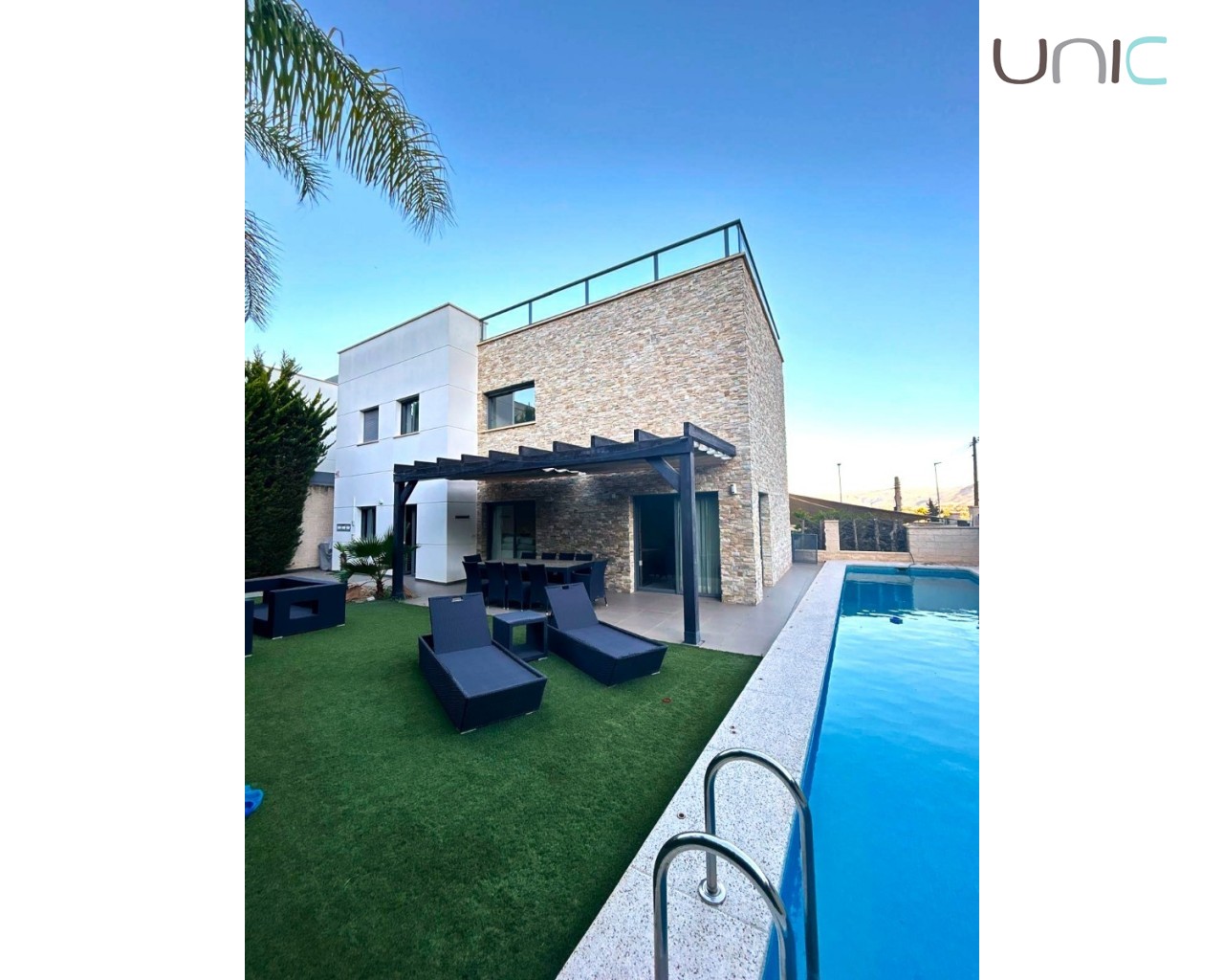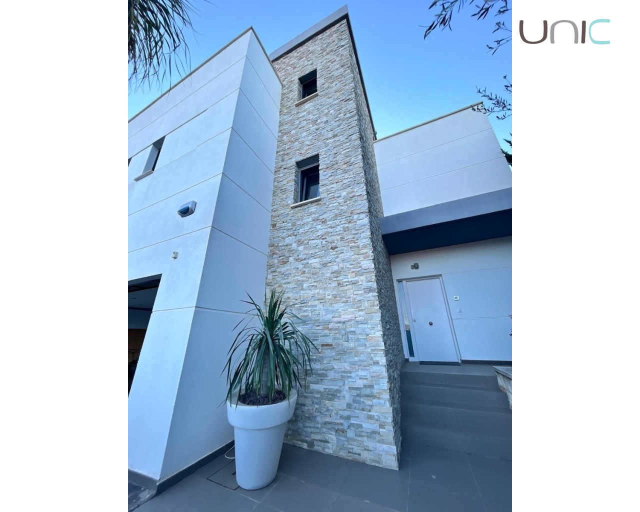 This robustly built, modern property boasts hand-laid natural stone and solid wood, seamlessly blending into the Serra Gelada Natural Park. It offers four spacious bedrooms with built-in wardrobes on the second floor, overlooking the bright and airy living room. The villa also features three fully equipped bathrooms, a separate kitchen easily accessible from the living room, dining room, and swimming pool. Two terraces, a solarium, a balcony, a storage room, and a covered garage are also distributed throughout the property. Located in one of Albir's most exclusive and peaceful neighborhoods, it is just five minutes from the beach, where you'll find restaurants and leisure activities to enjoy alone or with family. The beautiful Camino del Faro (Lighthouse Trail) is also nearby, offering opportunities for outdoor sports and magnificent views of the bay and the fresh Mediterranean air. Without a doubt, acquiring this villa offers a relaxed lifestyle. Thank you for your inquiry.