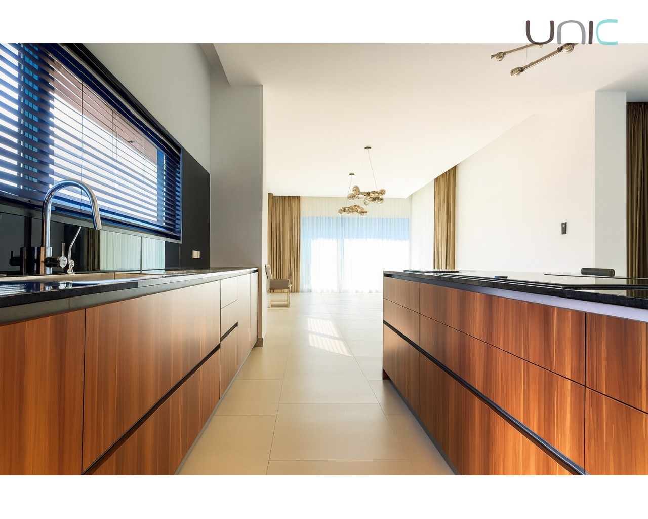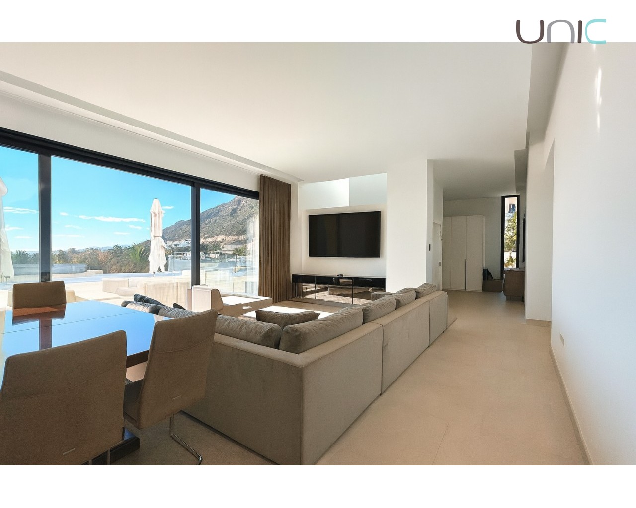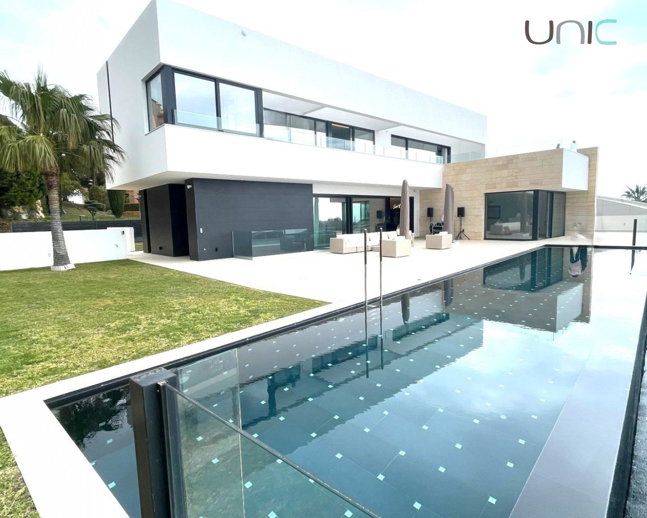 The terrace and interior of the house are furnished with exclusive Italian furniture, custom-designed. The kitchen is fully equipped with high-end appliances, integrating perfectly into the design and with a central island.
